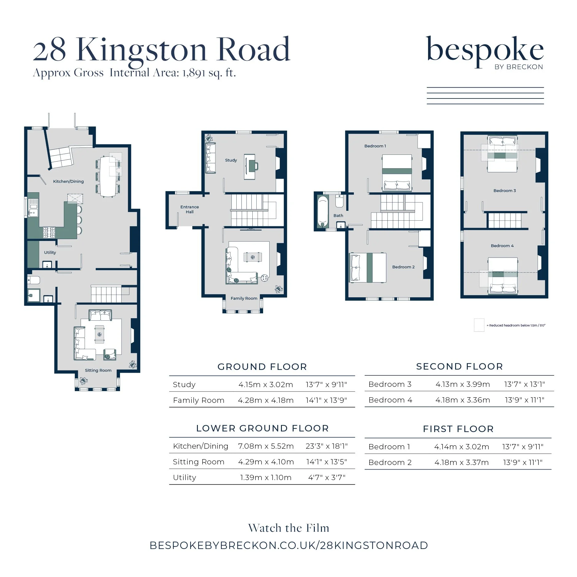 The west facing kitchen / breakfast room is on the lower ground floor and is a fantastic room, flooded with light from the gable window and skylights. The room itself spans over 20ft. in length and offers space for a large dining table and seating area as well as various storage cupboards.